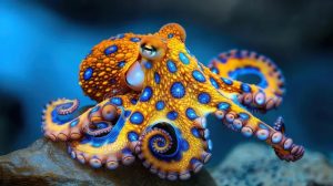 This month we continue our mini-series focusing upon the most lethal creatures on the planet. Consider the blue-ringed octopus. This tiny cephalopod only grows to a few inches in length, but it can be very dangerous. The octopus’ venom contains a powerful neurotoxin called tetrodotoxin, which is 1,200 times more toxic than cyanide. There is no known antidote. Blue-ringed octopuses spend most of their time hiding in small crevices, displaying a camouflage pattern. There they lie in ambush of fish and small crustaceans. It will pounce on a crab, pulling the prey towards the horny beak. The octopus’ beak then pierces through the crab’s exoskeleton, releasing the venom that paralyzes the crab’s muscles. Blue-ringed octopuses might seem docile and harmless to a child exploring a shallow reef in Australia. But if the octopus becomes frightened, it will quickly change color, becoming bright yellow and displaying about 60 rings flashing a bright iridescent blue! Despite its small size, one blue-ringed octopus carries enough venom to kill 26 adult humans within minutes. Their bites are tiny and often painless, with many victims not realizing they have been poisoned. The venom can result in nausea, respiratory arrest, heart failure, and sometimes total paralysis. Death is usually caused by suffocation. Think of all the complicated biological systems in this little octopus: poison concentration, venom storage, and excretion into a victim. All the while, the octopus is largely immune to this venom. What an amazing design!