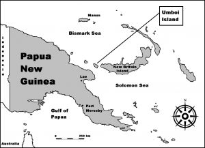 Follow up research might best be focused on the smaller islands to the north of Umboi (Long Island & Sakar Island), as well as the rivers flowing out the south of Umboi. Also, more research should be done in the Manus chain further to the north where Jim Blume had his Ropen sighting. The best place on Umboi to achieve a nighttime sighting of the bioluminescent flight would probably be the “bald spot” where we were on Mt. Tolou. It also seems like an ideal place to try to bait the Ropen. But a detailed photo of this creature might well require finding a regular feeding, drinking or sleeping site. Various villagers on the island are now participating in this research. Perhaps the disposable cameras that we left with them might yet capture a historic photo.